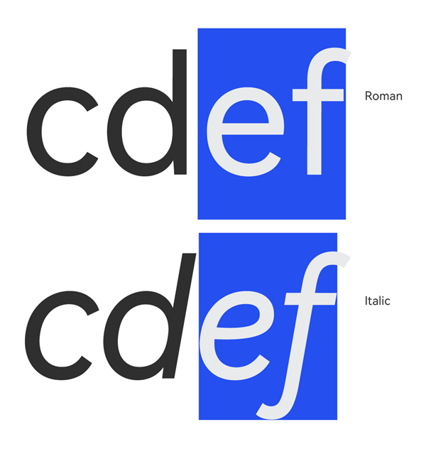 “Italic” 的设计参考了手写字的笔画结构,向历史致敬。