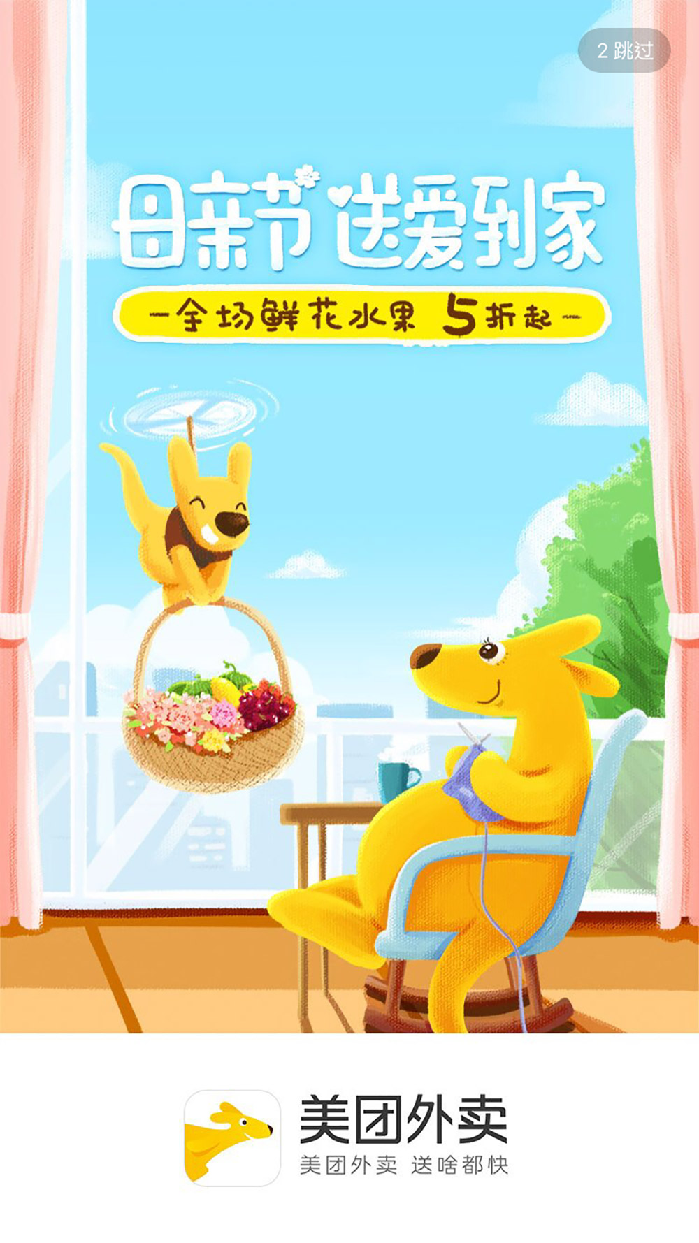 15张美团外卖插画开屏海报设计,以 IP 美团袋鼠形象为主角进行设计的插画海报,可可爱爱又充满温馨!