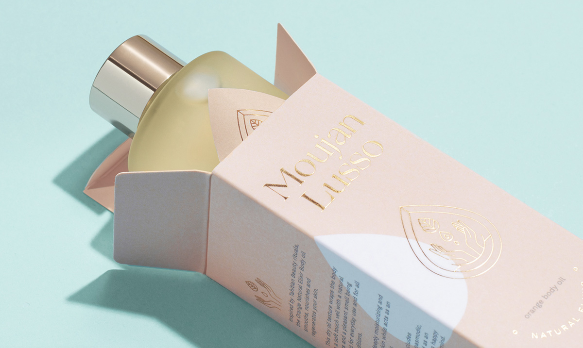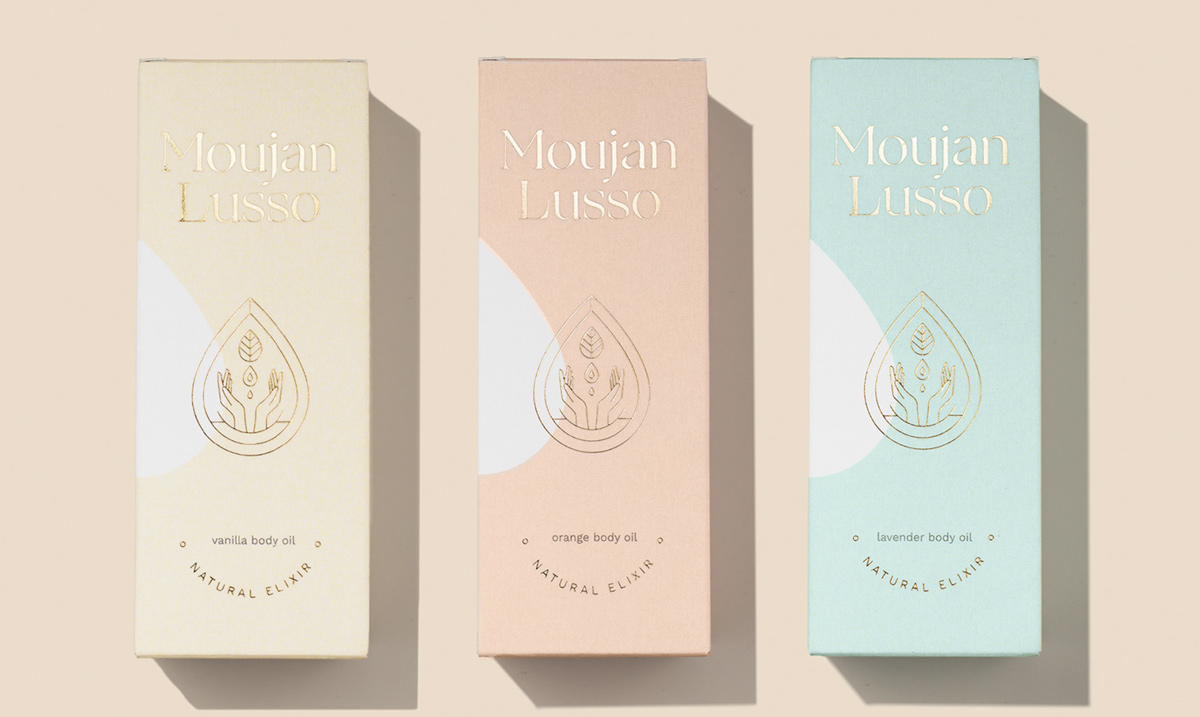 Moujan Lusso是一个天然护肤品牌,专注于从植物中提取精油,产品只包含天然成分,能使皮肤光滑、滋养和再生。品牌视觉选择精致、柔和的风格,同时采用优雅的字体和排版,以传递品牌自然、奢华、柔滑、干净的特性。