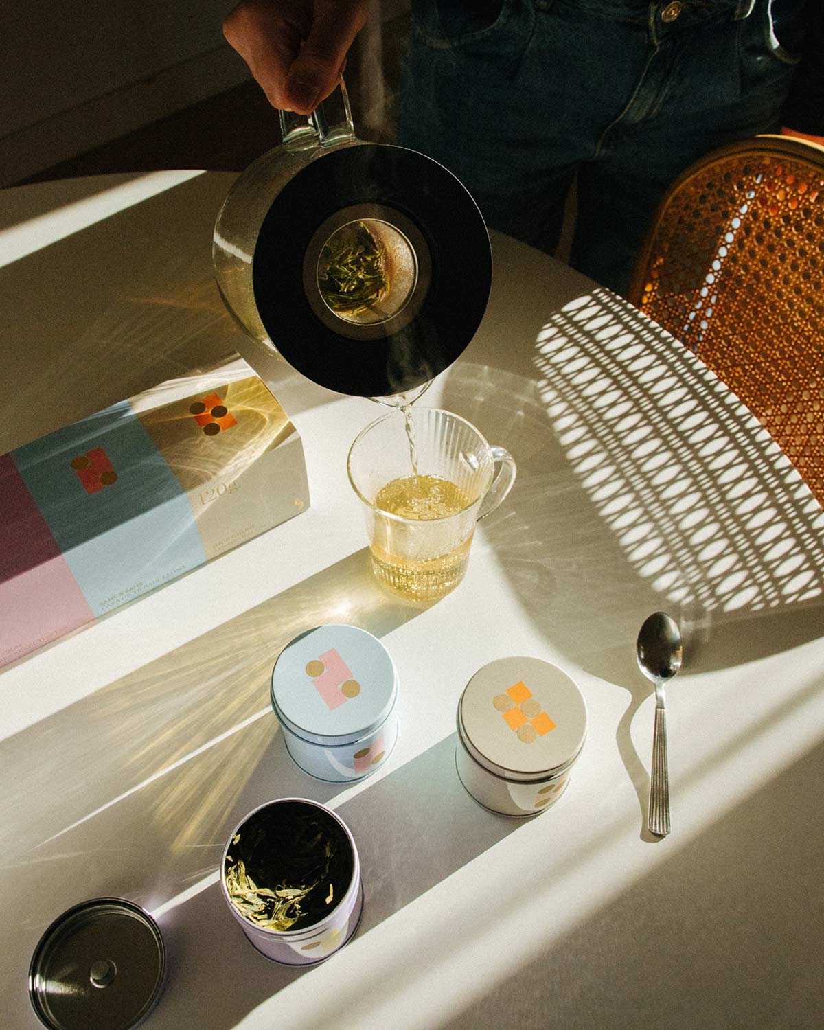 Sans & Sans 推出了 Tres(三杯茶)系列,茶罐是一个内容可变的容器,客户可以选择自己喜欢的茶。包装采用了同样的抽象简约的风格,选择不同的色彩,既体现了茶叶的纯粹美味,也传达了品牌选择自由的理念。