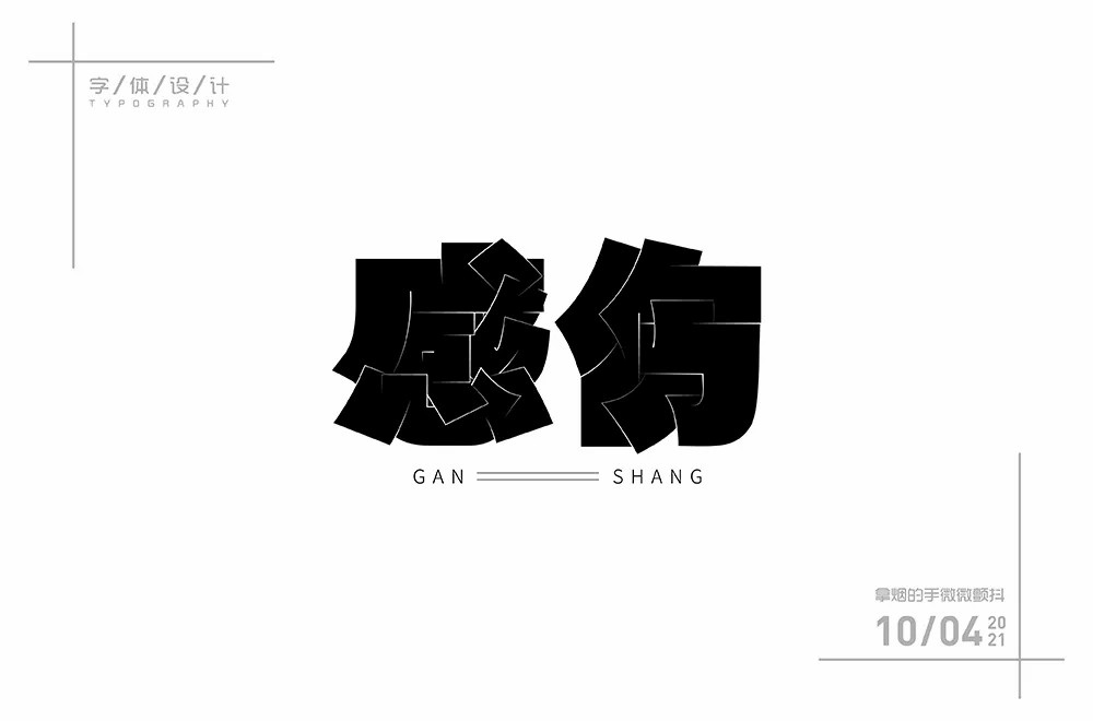 感伤——命题字体设计。这组上榜的作品,都是字形或创意较为突出的作品,某些作品可能还不甚完美,但都有学习和借鉴的价值,愿这些作品能给你带来灵感和启迪。