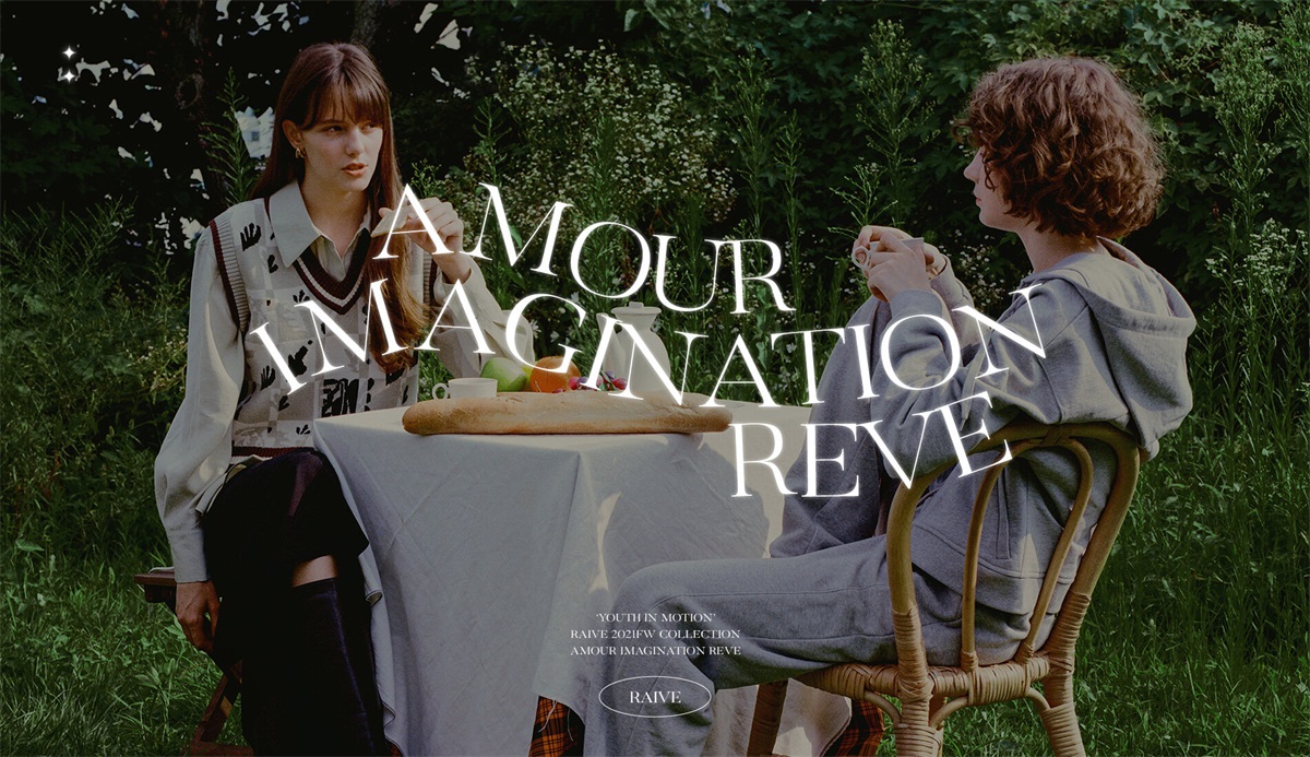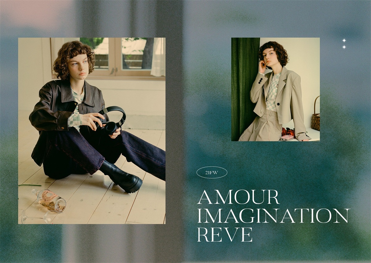 服饰banner如何设计才能有故事感?来看这组韩国设计案例。画面的图片素材选择复古色调的胶片风,为了避免整体太过呆板,文字采用跳跃式的曲线设计,让整个banner更生动;用高斯模糊处理后的实物图片做背景,也让画面的设计感和感染力更强。