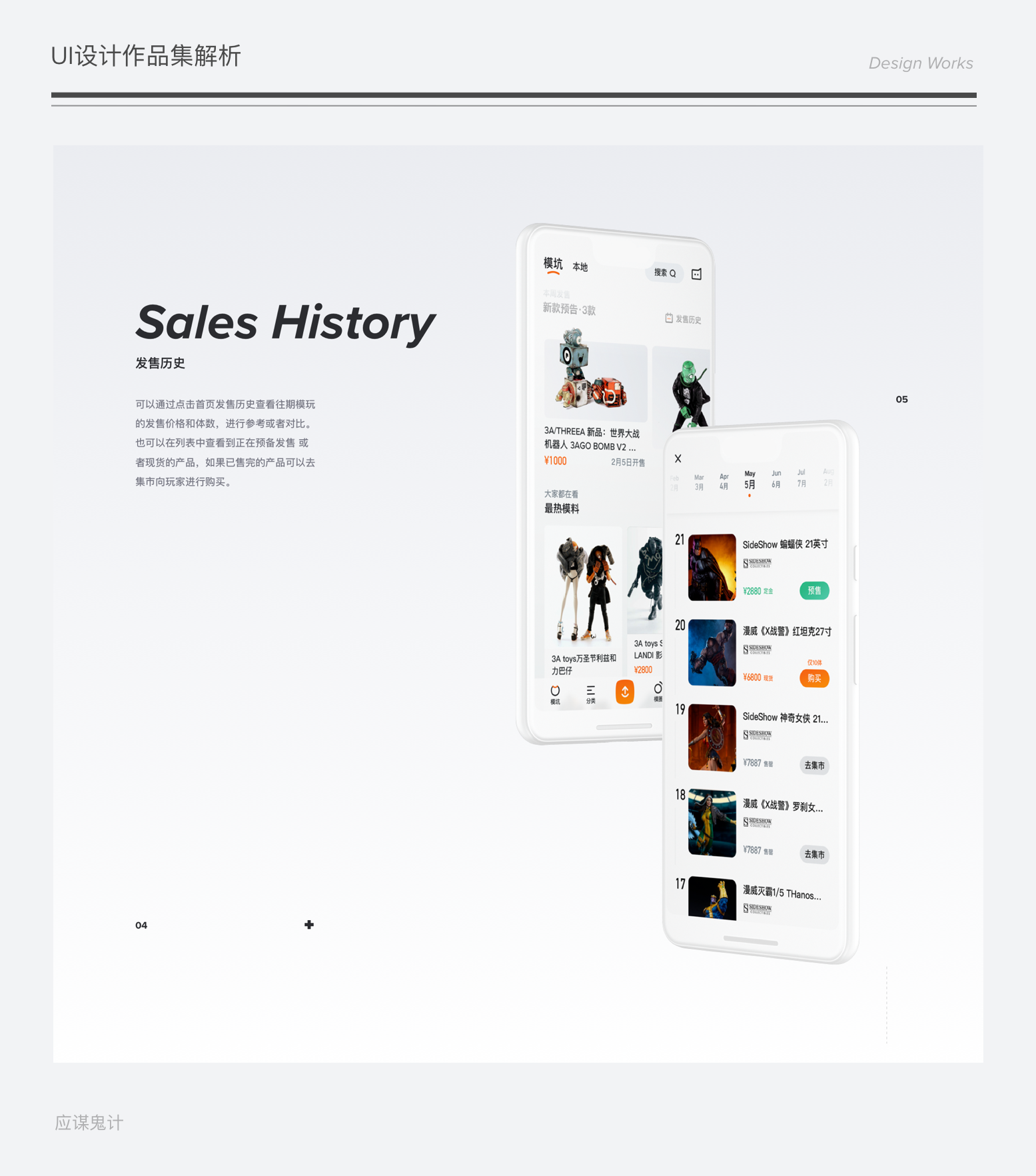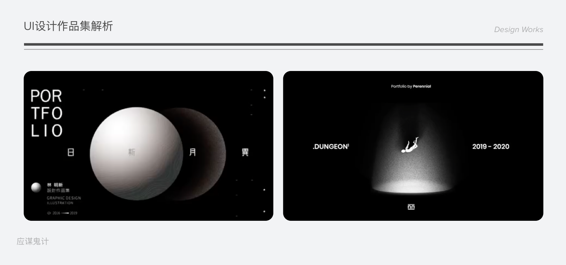 还有一点要注意,作品集并非工作项目的陈列集,不要将所有工作的内容和流程都一股脑儿搬运道作品集中,很多同学会把图标、标注甚至草稿都放进去,破坏了作品集整体的美观性,一定要记住,UI设计作品集设计感是最重要的,文字、分析是其次。