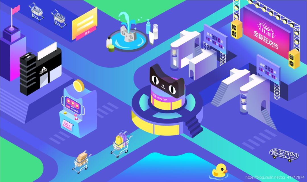 1.新建750x1334px的文档,将绘制好的天猫超市2.5d插画放进来吧,再加上点装饰和文字。看下效果吧,ok了。