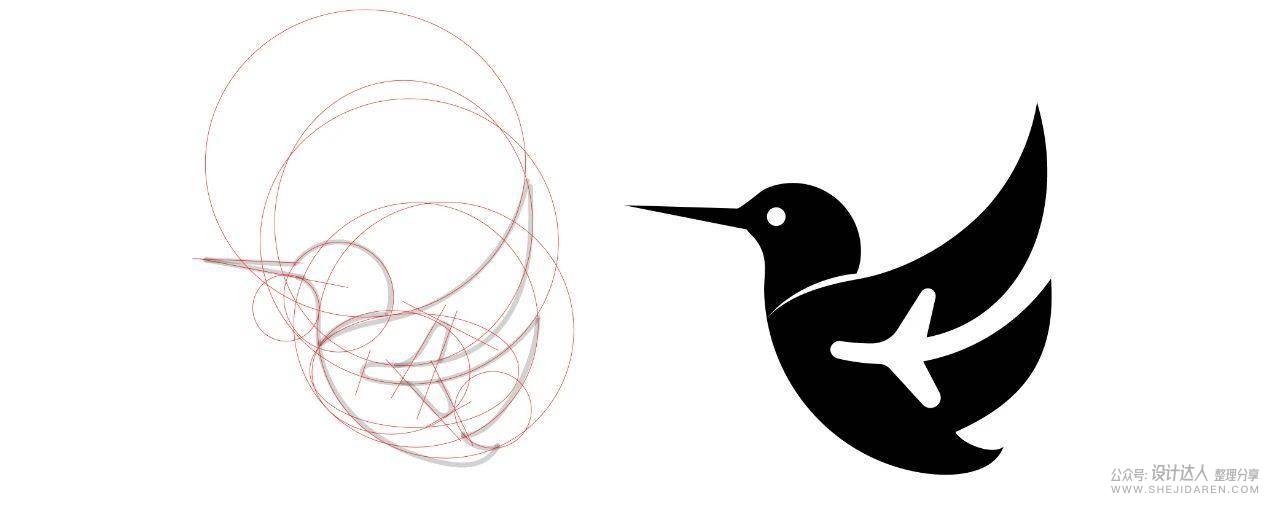 下面开始尝试绘制草图,头部和身体的走向先不去考虑,延用下来即可,翅膀处改为字母F的形式,观察后发现整体虽然可行,但尾巴处过于夸张,影响字母的识别,于是尝试缩短尾巴的延长,以及反方向的身体处理,中间的方案,缩短了尾巴后整体不够平衡,故选择最后的方案。