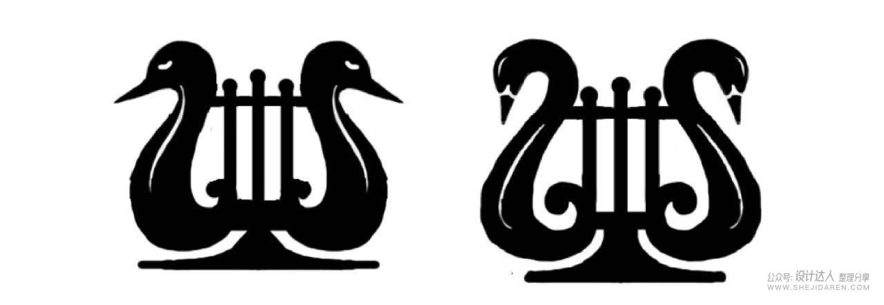 下面,把这只该死的鸭子替换成我们画好的天鹅,并适当优化一下细节,天鹅尾巴的卷曲处放大,来交代的更清楚些,底座适当加粗并调整大小以及竖琴的笔画加粗,来达到平衡整体重量作用。