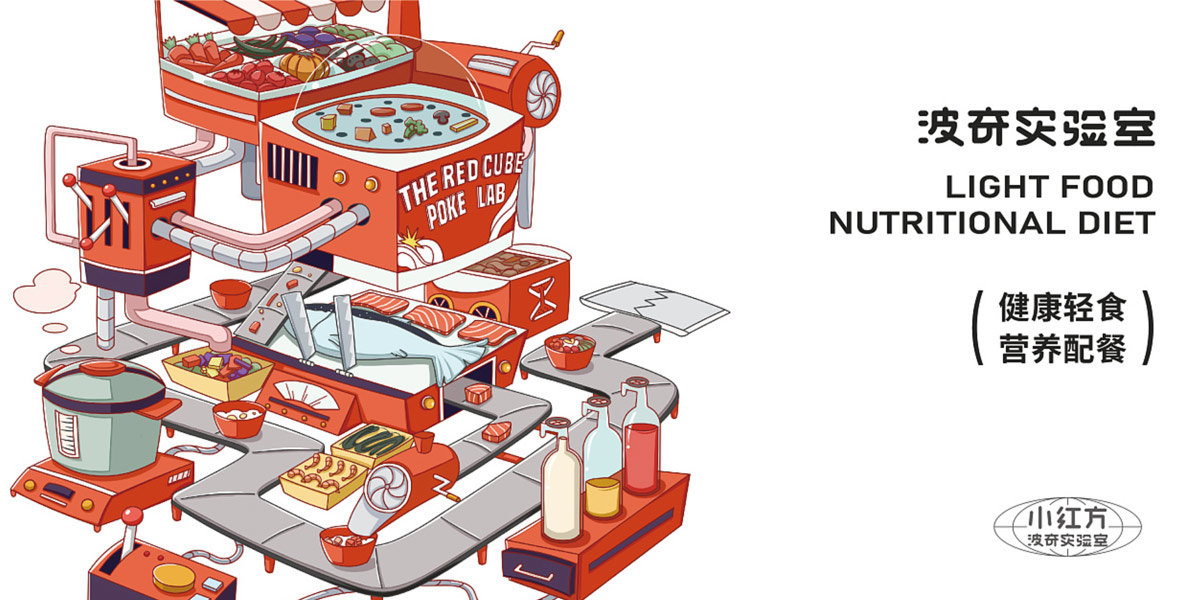 The Red Cube·Poke Lab: 以Poke bowl为主产品,Poke bowl是由新鲜鱼类(或肉类)加蔬菜架构在主食上的一碗(bowl) Poke源于夏威夷语“切块”意思,The Red cube则是引申切块的三文鱼和金枪鱼。Poke lab代表我们希望将更多营养科学方面的东西以轻松明了的方式加入我们品牌,带给那些对健康饮食或减重有需求的客人。同时,从”Lab”中,我们也会做出更多对于“轻食”的更多可能性,而不只是拘泥于沙拉+沙拉酱。带来更多口味口感上的新体验的同时,改变“轻食=生菜+无聊”的刻板印象。