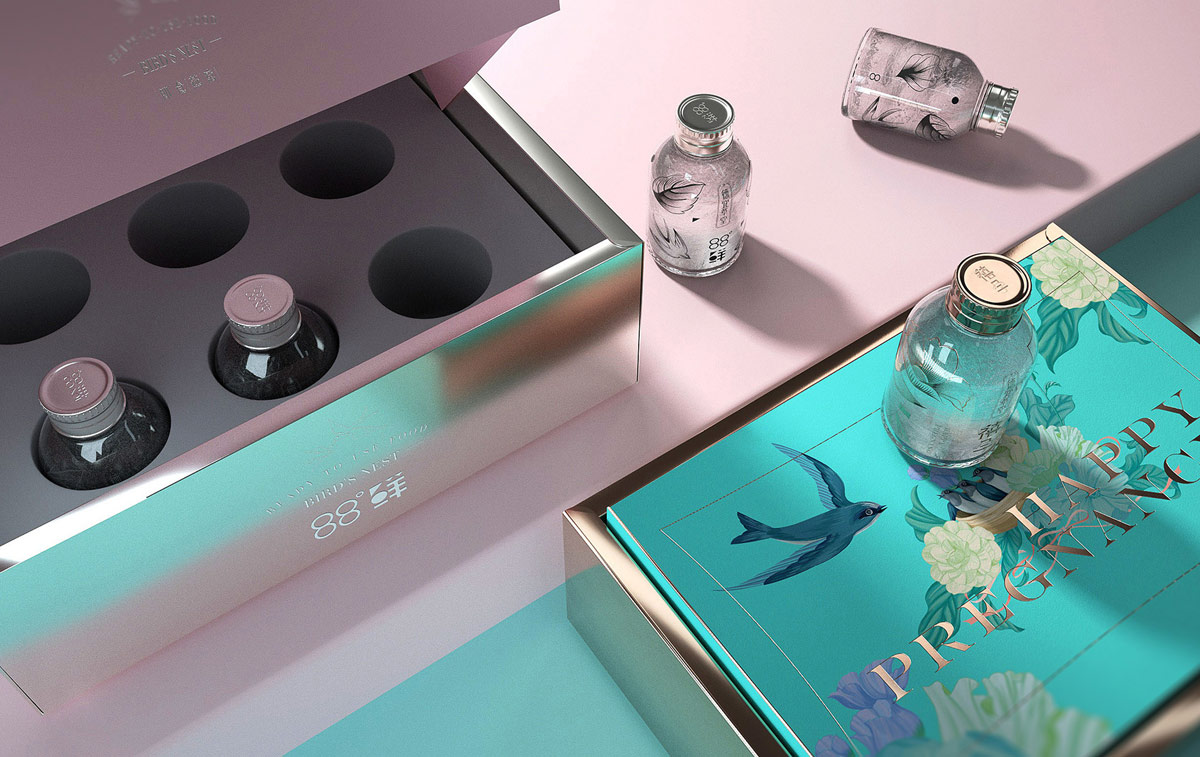 [ 德宜草堂 燕窝包装设计 ]1/ 禧孕燕窝 +88鲜燕窝禧孕系列是针对孕期实用的燕窝产品,偏向高端定位,我们以插画形式描绘燕子喂补的场景,塑造温情高雅的产品形象。88鲜系列是相对偏年轻化的产品,以相对时尚气质的视觉风格来突出88度冷冻新鲜的技术,所以我们以花构造88的元素。2/ 胶原燕窝肽这是燕窝肽系列产品,强调先进科技提取燕窝肽的技术,所以在设计风格上以几何简约来表达科技调性,最终以时尚的视觉形象呈现。3/ 光耀之匙这是燕窝白番茄雪肌片,系列名称为光耀之匙,定位以时尚年轻,爱美人士受众。于是我们以钥匙为核心元素,以线构成出光芒与燕子的结合,整体呈现时尚感。4/ 中秋礼盒这是品牌中秋礼品盒,为符合品牌时尚调性,整体元素与配色以极简平面构成来表现出燕子,月亮,荷花的景色。