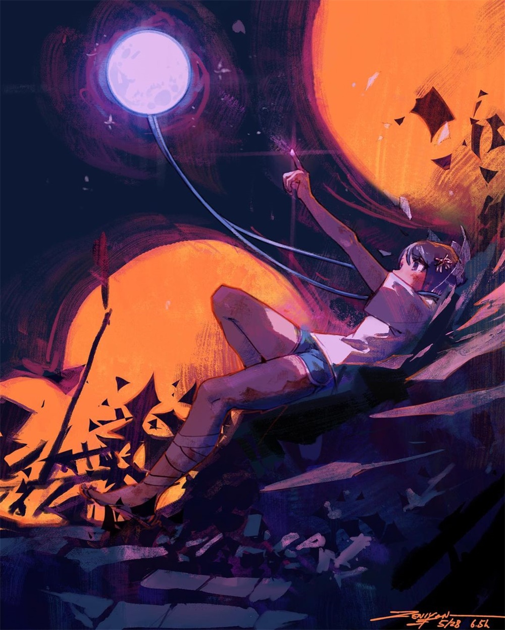 插画师 lampzeni 的人物插画,画面有着强烈的明暗对比,加上水彩笔刷的质感和淡雅的配色,其中静态的画面构图,却能感受到一种动势,使整个画面故事感十足!!